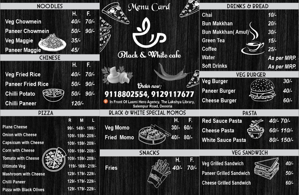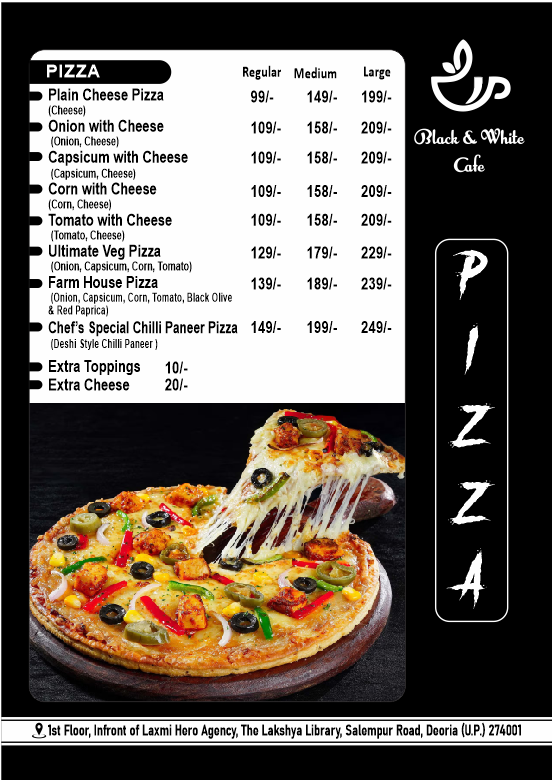 Welcome to Black & White Cafe, located on the 1st floor of The Lakshya Library in Deoria. This hidden gem serves up a delightful range of dishes that cater to both pizza aficionados and comfort food lovers alike.