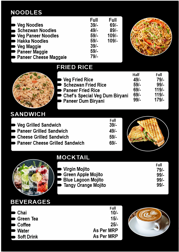 - Chinese Delights: Indulge in flavorful offerings like Veg Fried Rice and Chilli Paneer, guaranteed to tantalize your taste buds.